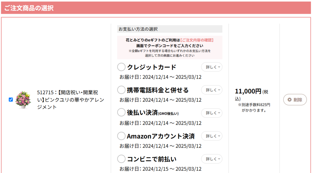 ※母の日やお盆期間、敬老の日、年末年始、年度末など、ご注文いただくタイミングによっては、最短お届け日の設定が変わる場合がございます。